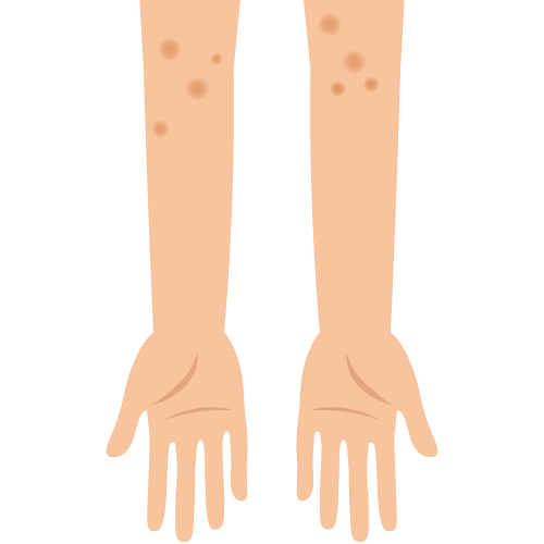 ある日、腕に妙な赤い斑点がポツポツと複数あることに気づきました。